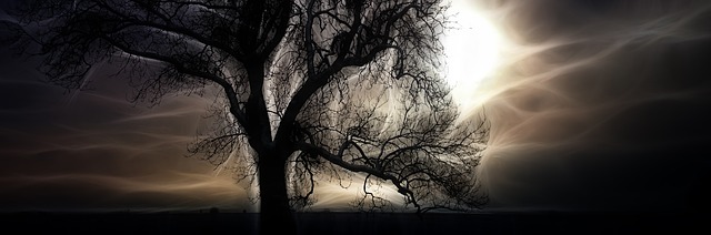 Un soir de janvier, à la fenêtre, je regarde le chêne dénudé. La lumière du réverbère illumine ses branches recouvertes de givre. Un amas de neige couché entre le tronc et le début d’une branche. Quelques feuilles de couleur ocre sont demeurées suspendues à des branches. Je suis émue de les voir résister au froid, au vent, au verglas. Une branche cassée que je ne vois pas quand le chêne est habillé de ses feuilles. L’humilité de se montrer tel qu’il est.